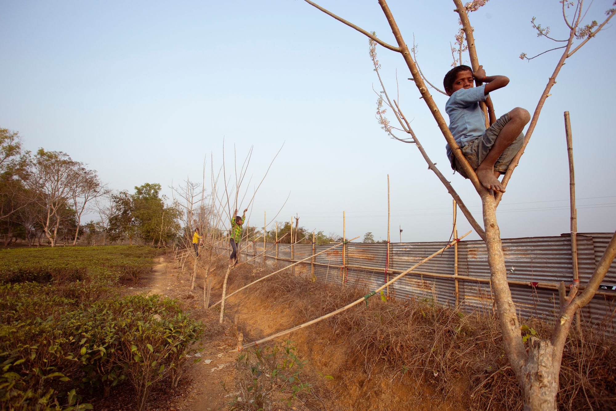 'Burden' is a gritty black and white portrayal that casts the boy with his heavy slung rug bag traipsing through a chokingly ashen scene, with cows in the background and black-eared kite birds circling above.