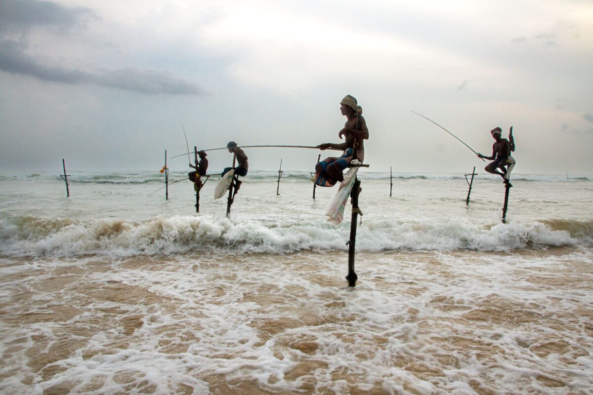 The Fishermen collection shares 21 photographs of the daily fishing routines in Myanmar, China and Sri Lanka. Myanmar fisherman are shown with human sized domed rigs, cast out from wooden canoes. China fisherman tend to a sea of sewn sticks that hold together nets with matchstick like patterns. Sri Lanka fisherman take to the seas atop well balanced positions as the waves rush in.