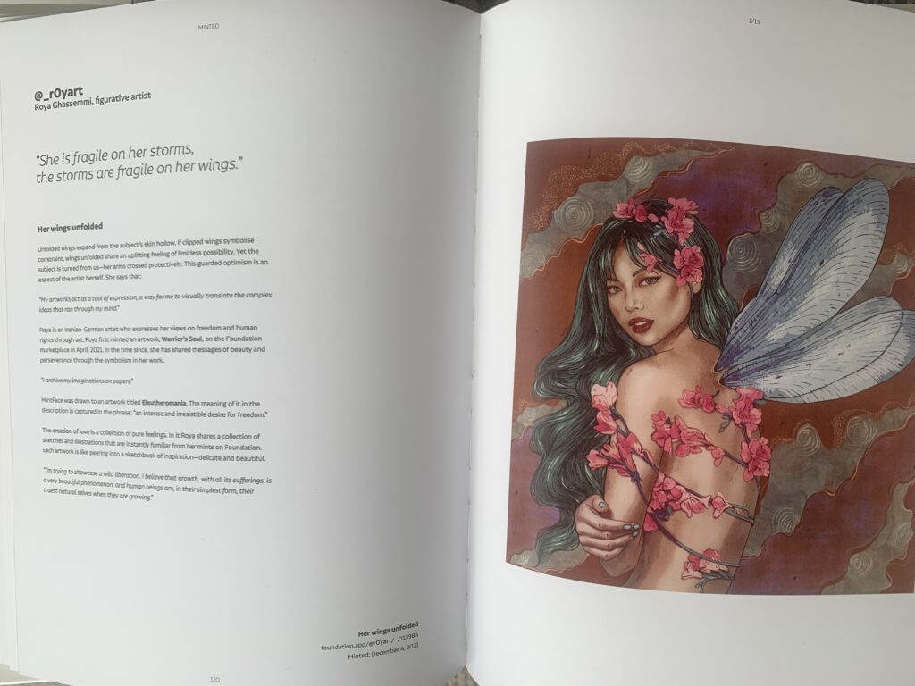 Roya first joined the cryptoart revolution 1325 days ago so is no stranger to the world of minted art. A featured artist in the MINTED book the first introduction to her line work.