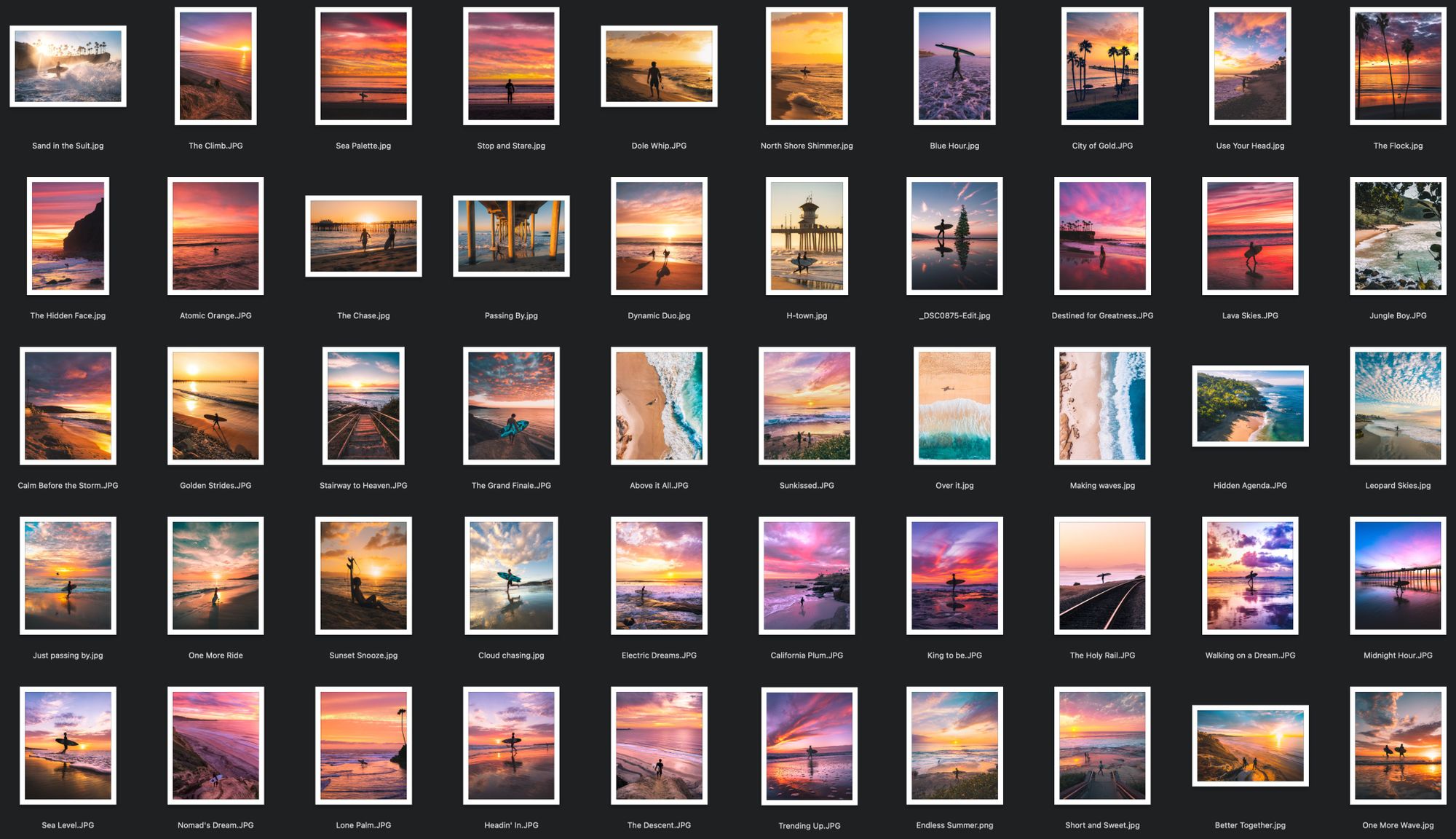 Just as a surfer seeks one last wave, I’ve spent the last 8 years chasing sunsets, swells, and capturing the aura of golden hour one day at a time."