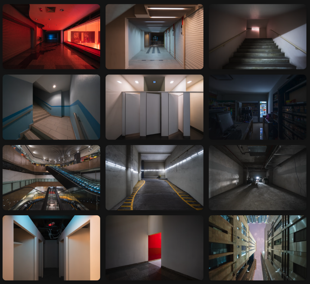 Aesthetics of the Immaterial frames the forgotten in provocative ways to recalibrate what we had missed on our travels to date. The angular steps, the yellow laddered caution and the sliver of sky all feel like a form of trap in Loh's work. As if the lens is both inviting us there with perspective, yet with alarm bells sounding. Loh's work is unafraid of simplicity, instead seeking out the spaces where the architects had decided no pomp or frill necessary.